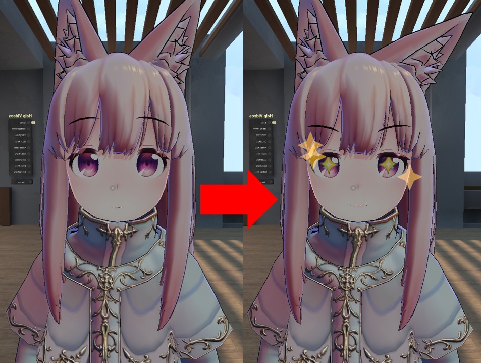 こんな感じにアバターの目をキラキラ輝かせるエフェクトを付けていきます!!