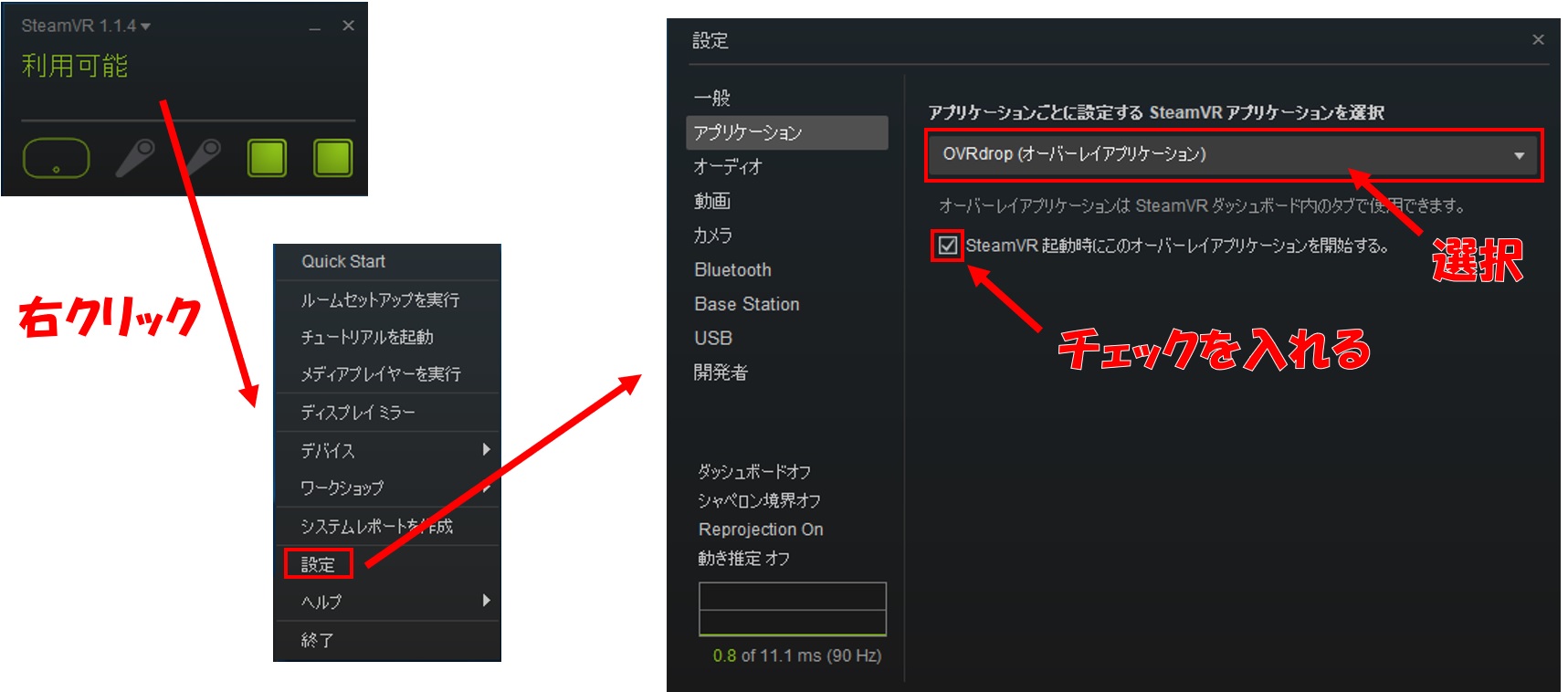 SteamVRを起動してOVRdropを起動して・・・と起動の手間が増えてしまうため(たかがダブルクリックもう一回やろ!!…されどもう一回)