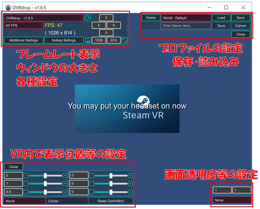 先ほど開いたOVRdropの画面説明をざっくりいたします。