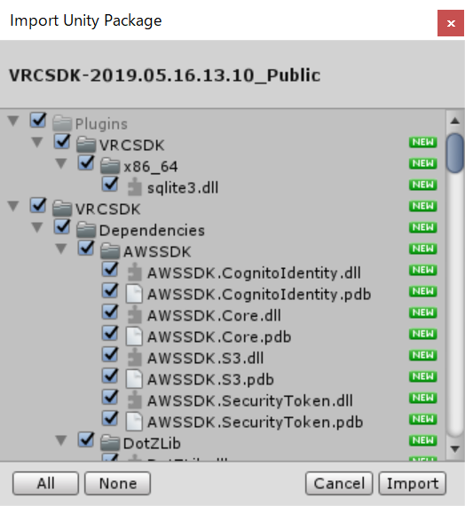 メイン画面を出した状態でDLしてきたVRCSDK.unitypackageをダブルクリックでインポートしましょう。